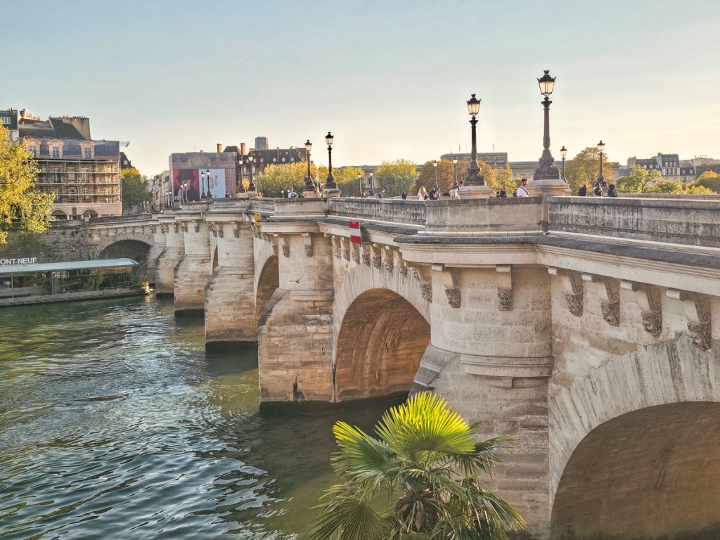 Pont Neuf is a historic stone bridge that stretches across the western tip of Île de la Cité, the island where Notre Dame stands. Pont Neuf means “New Bridge,” but it’s actually the oldest bridge in Paris, completed in 1578.