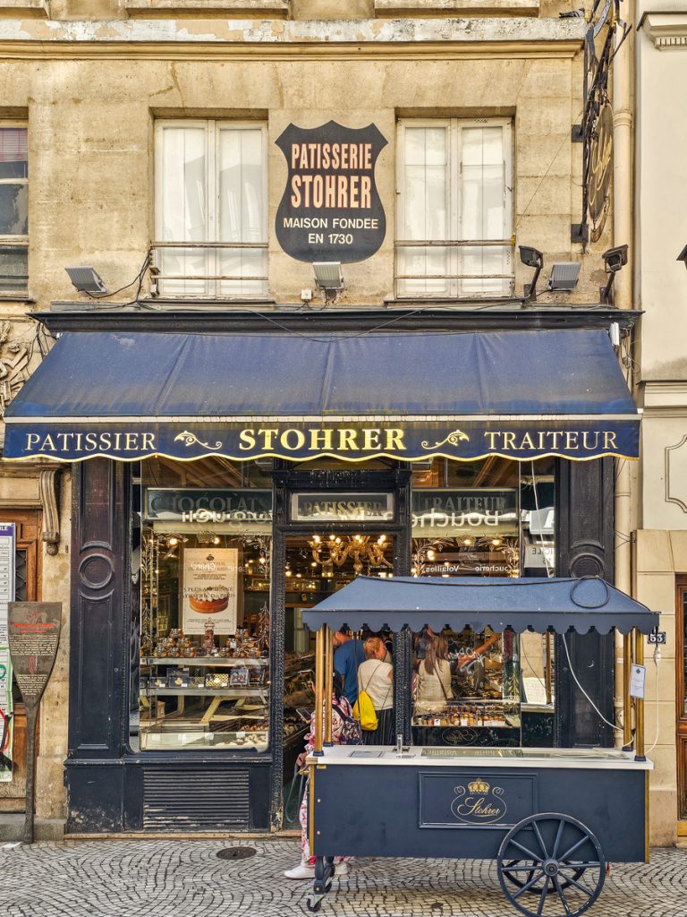 It’s an easy area to stroll, grab a coffee outside, or pop into a few stores as you go. Two well-known sweet shops are along the street: A La Mère de Famille for chocolate and Stohrer for pastries. Stohrer is actually considered the oldest pâtisserie in Paris, and the shop is beautiful!