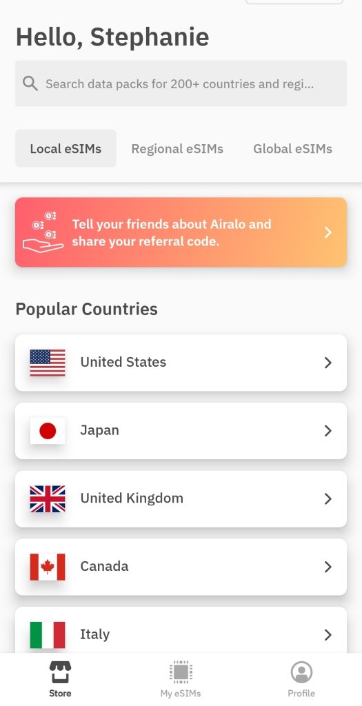 All you need to do is put in your country in the Airalo app, choose which plan works for you (there are different data levels and lengths of time), and then follow the simple, detailed instructions for installation.