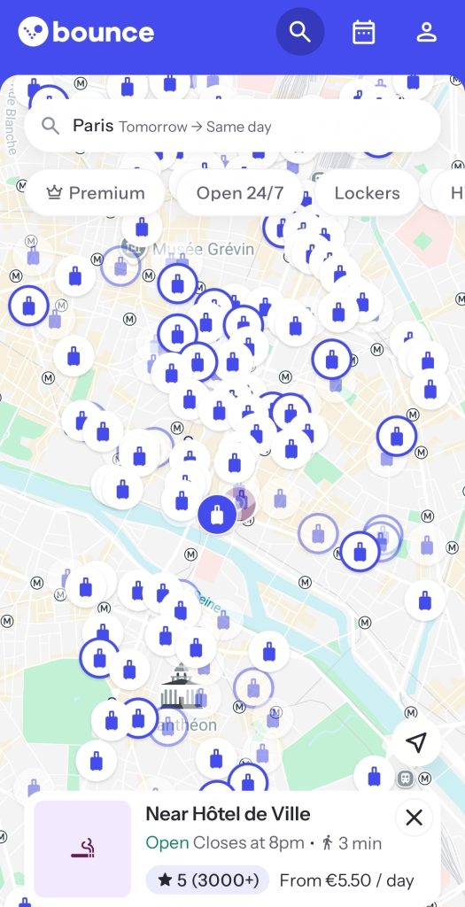 Bounce is an affordable luggage storage service, perfect if you’re staying in an apartment rental and need somewhere to store your luggage for the day before or after checking in. For example: checkout is at 11am, but your train leaves at 7:15pm.
