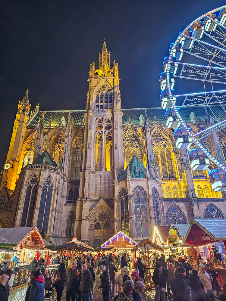 Metz feels like one big Christmas scene, with blankets of lights and lit decorations strung across streets, and markets just minutes apart. It’s a similar (though less elaborate) vibe to Strasbourg and Colmar, but without the heavy crowds.