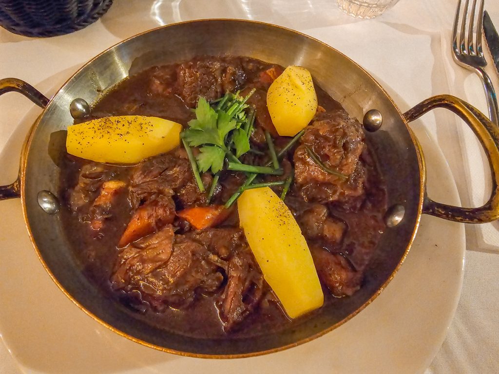 Boeuf bourguignon is one of Burgundy’s most famous dishes and one of the most satisfying French meals I’ve ever tried. It’s made by slow-braising beef in red wine and beef stock with carrots, onions, garlic, and herbs, then often finishing the stew with mushrooms and pearl onions.