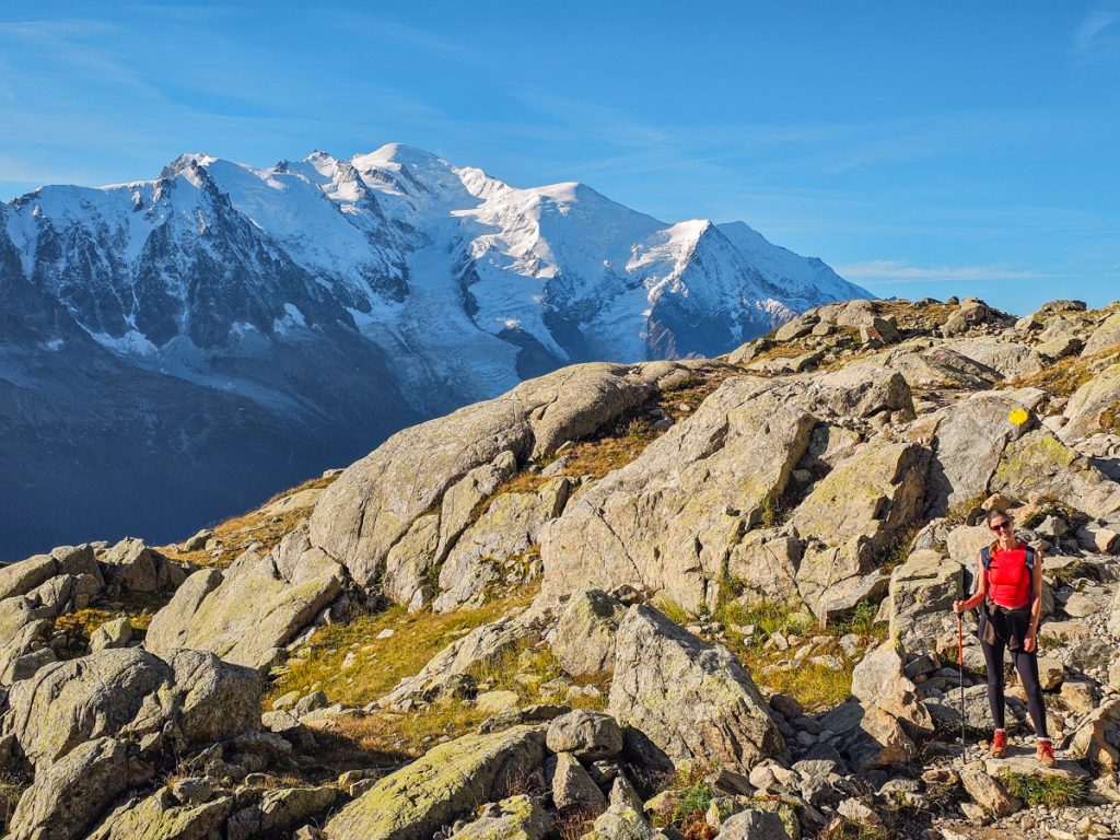 I’d call it pretty easy, especially compared to the fairly intense uphill climb you’d face starting directly from La Flégère. There are some rocky spots you have to pick around, though.
