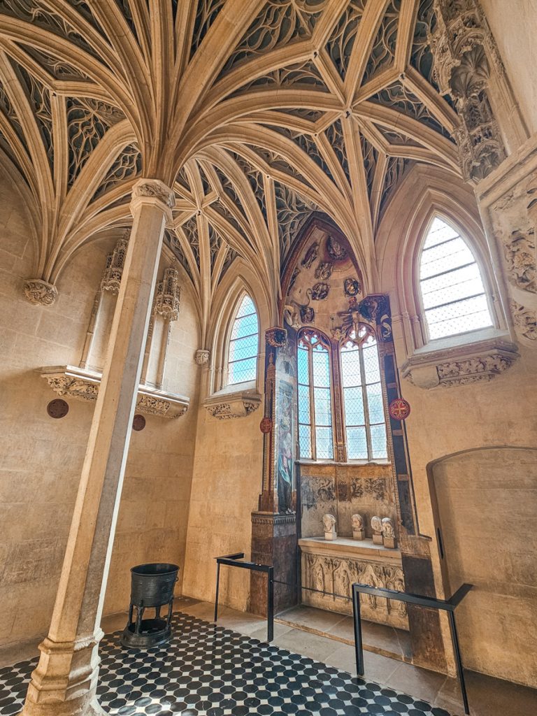 Make sure you go all the way to the back of the upper floor to find the tucked away, small Gothic chapel. It’s almost perfectly square, with delicate arches and a ceiling that almost look like lace carved from stone.
