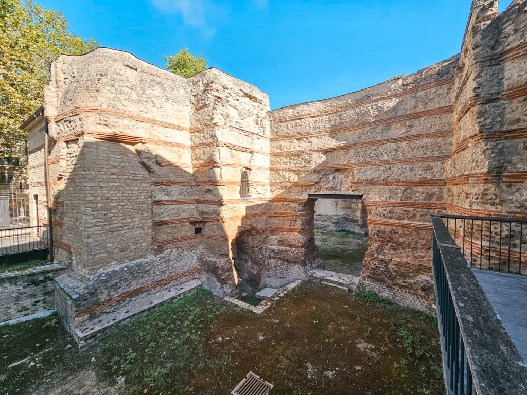 Just outside, the museum’s medieval garden backs up to the ruined thermal bath walls, and is a quiet space designed to reflect the practical gardens of the Middle Ages, complete with sections for medicinal herbs and kitchen plants.