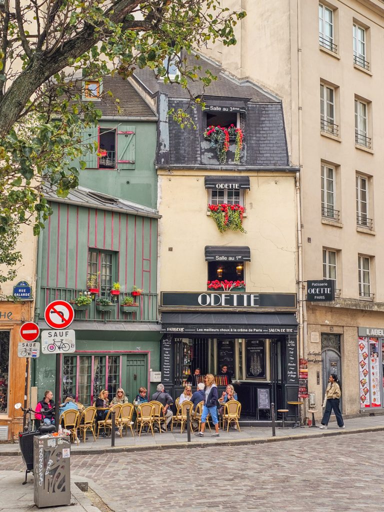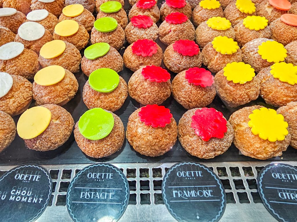 Not far away is Odette, a small shop in a charming facade that sells choux pastries (cream puffs) piped with different fillings. Absolutely delicious.