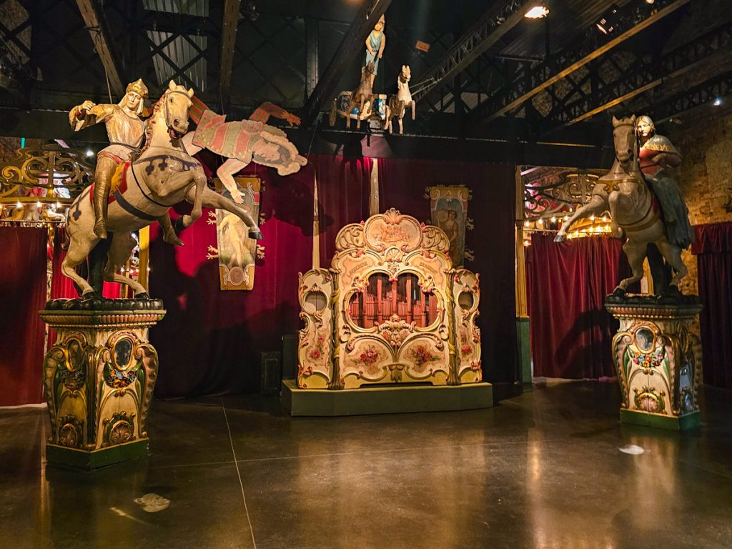 Here, the worlds of vintage carnivals, curiosities, and fairground art come to life. Between the antique organs, carved figures, old-timey games, and whimsical rides, the whole place feels alive, more like stepping into an actual fairground than visiting a museum.