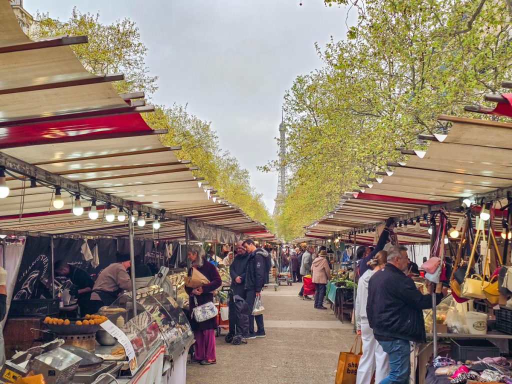 Why Visit: For a traditional market with Eiffel Tower views. Here you can find everything from foods like produce, meat, cheese, fish, and breads, to purses, scarves, trinkets, knives, linens, and other “goods.”