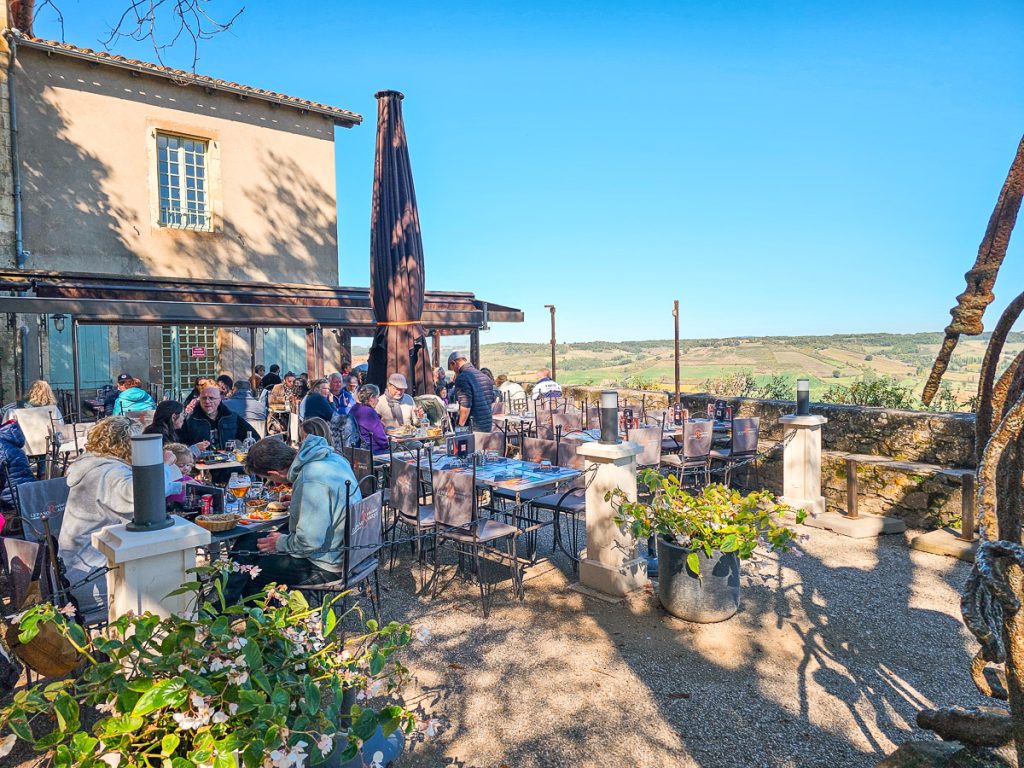 Place de la Bride is an open square at the top of the town, lined with cafes and shops, with a panoramic viewpoint over the countryside beneath.